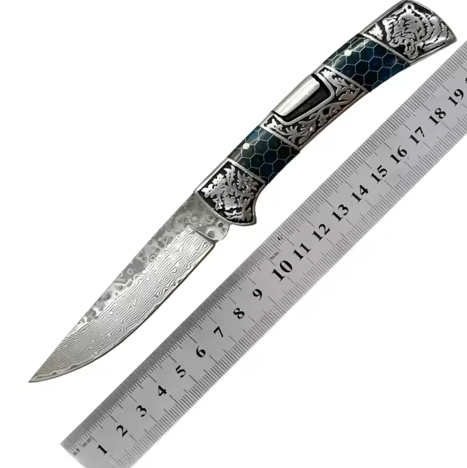 Джобен нож Ahmed I, Къмпинг и туризъм, сърцевина от дамаска стомана VG10, фосфоресцираща червена дръжка, 22 см