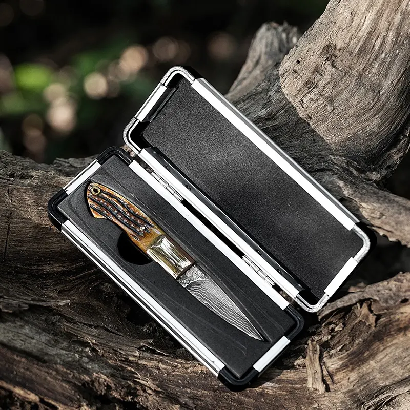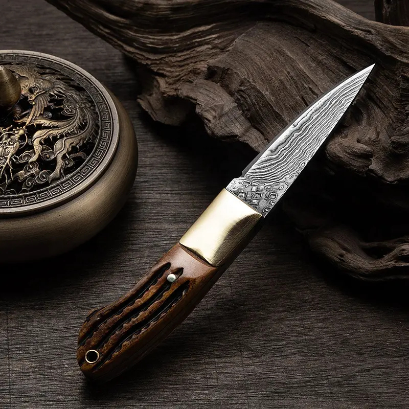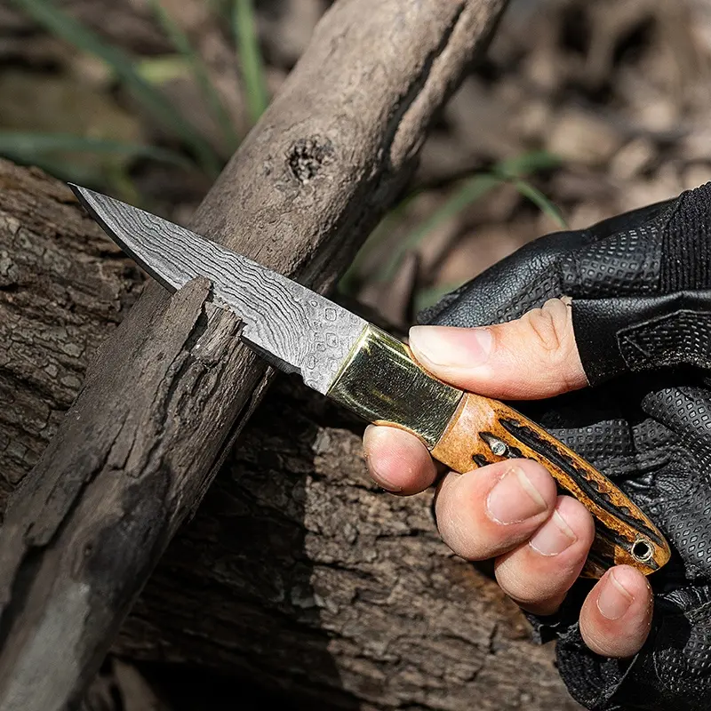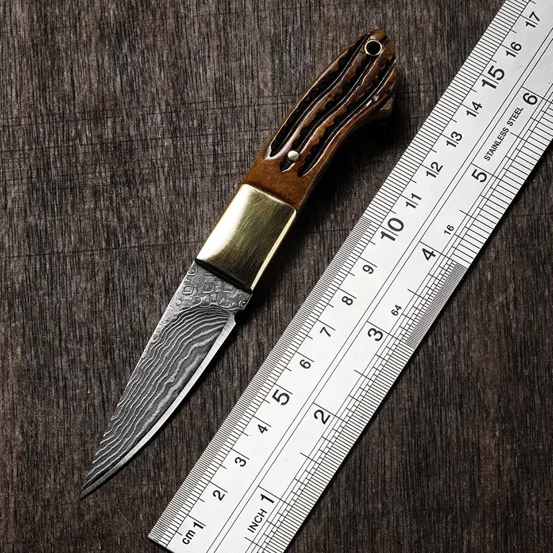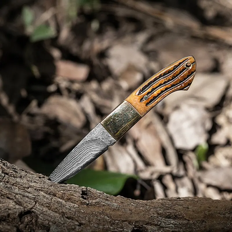 Нож Blaze, къмпинг и туризъм, дамаска стомана, рогова дръжка, 14 см