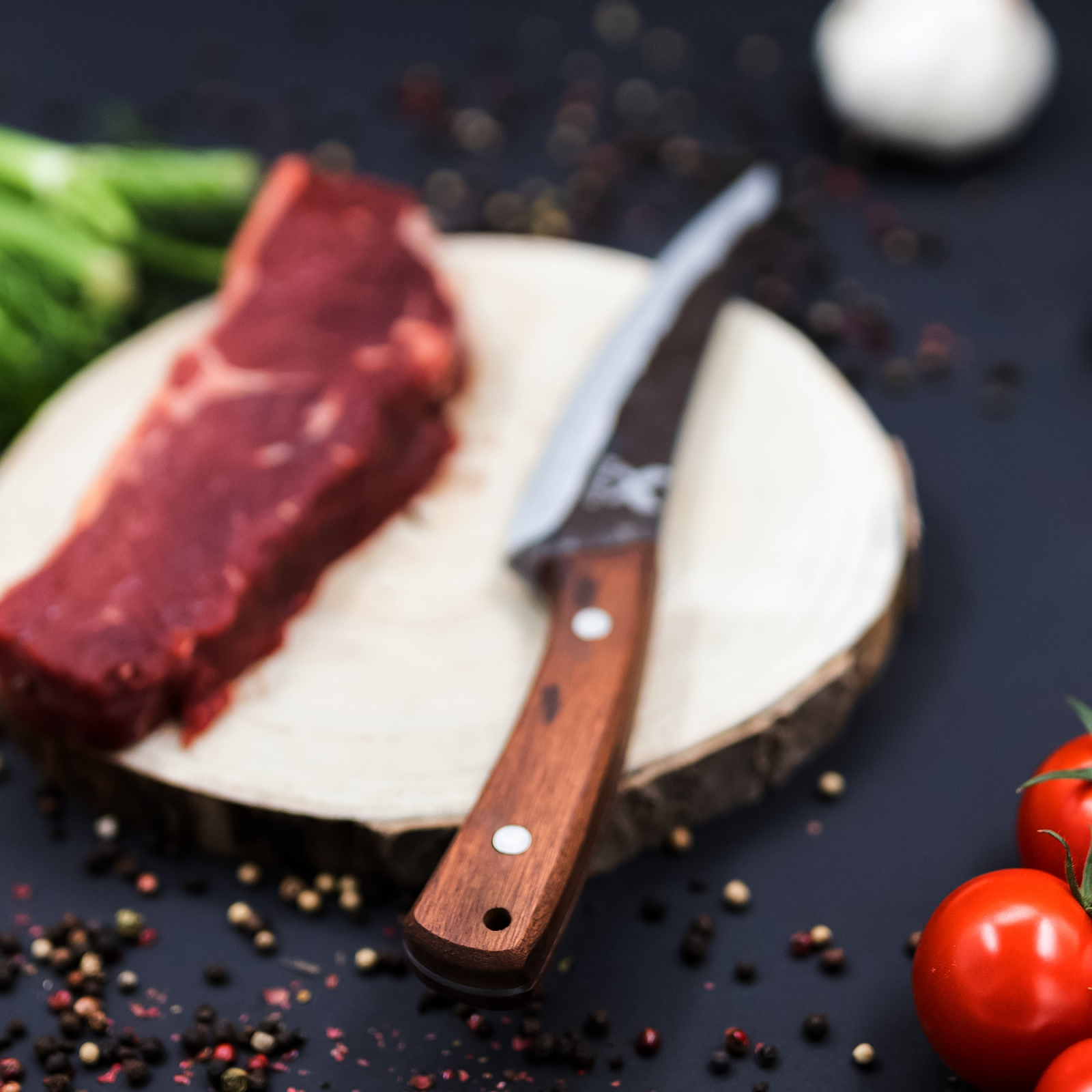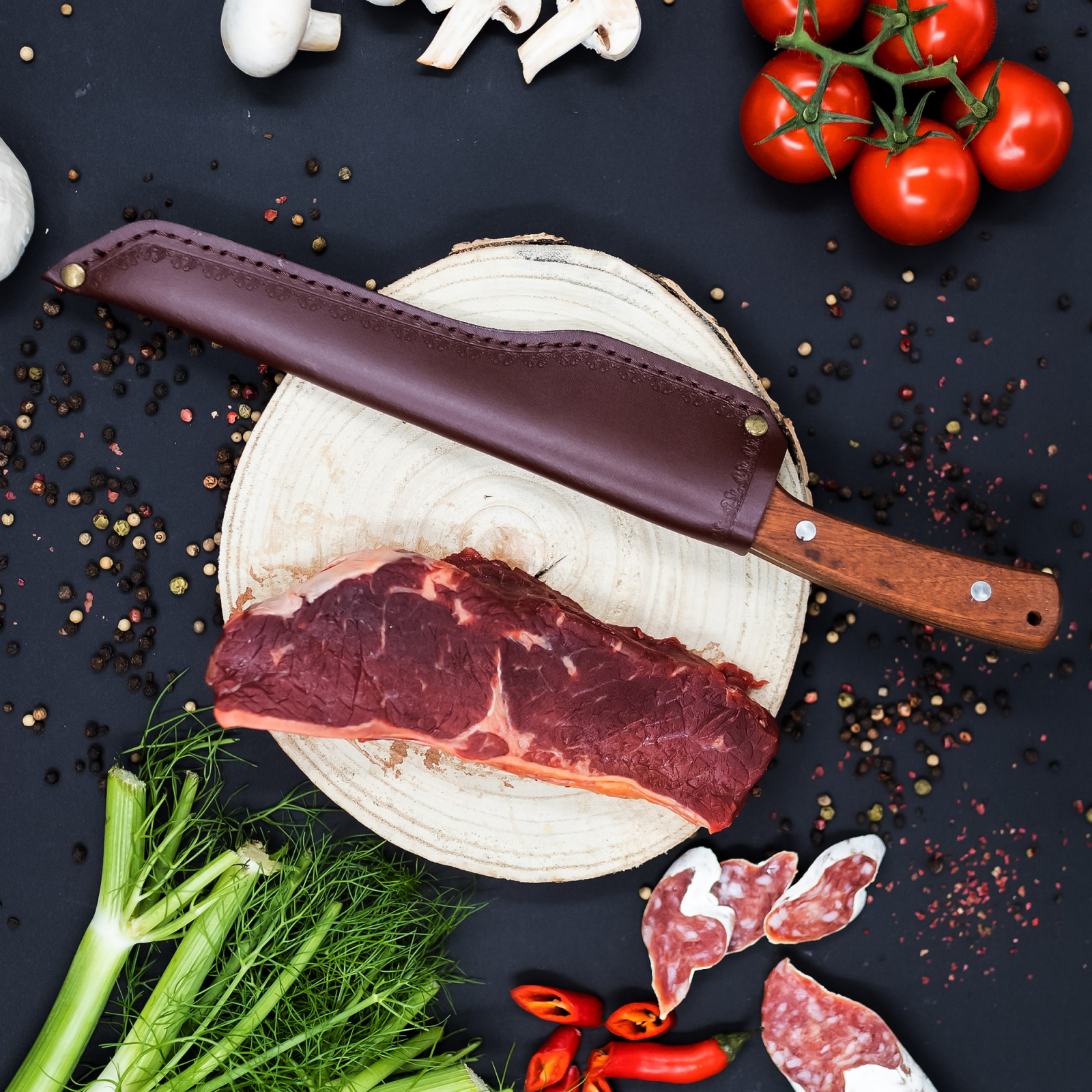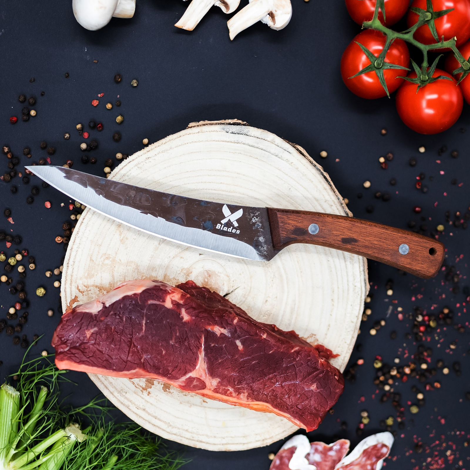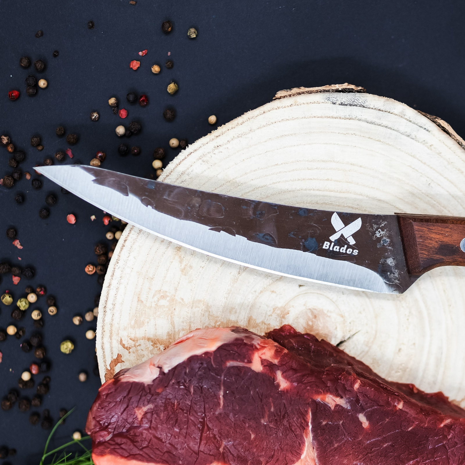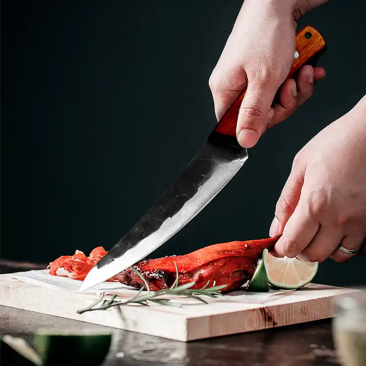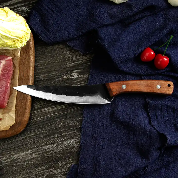 нож Subtility, кухня и къмпинг, изковано покритие, стомана 4Cr13, дръжка от дърво Sapele, 26,5 cm