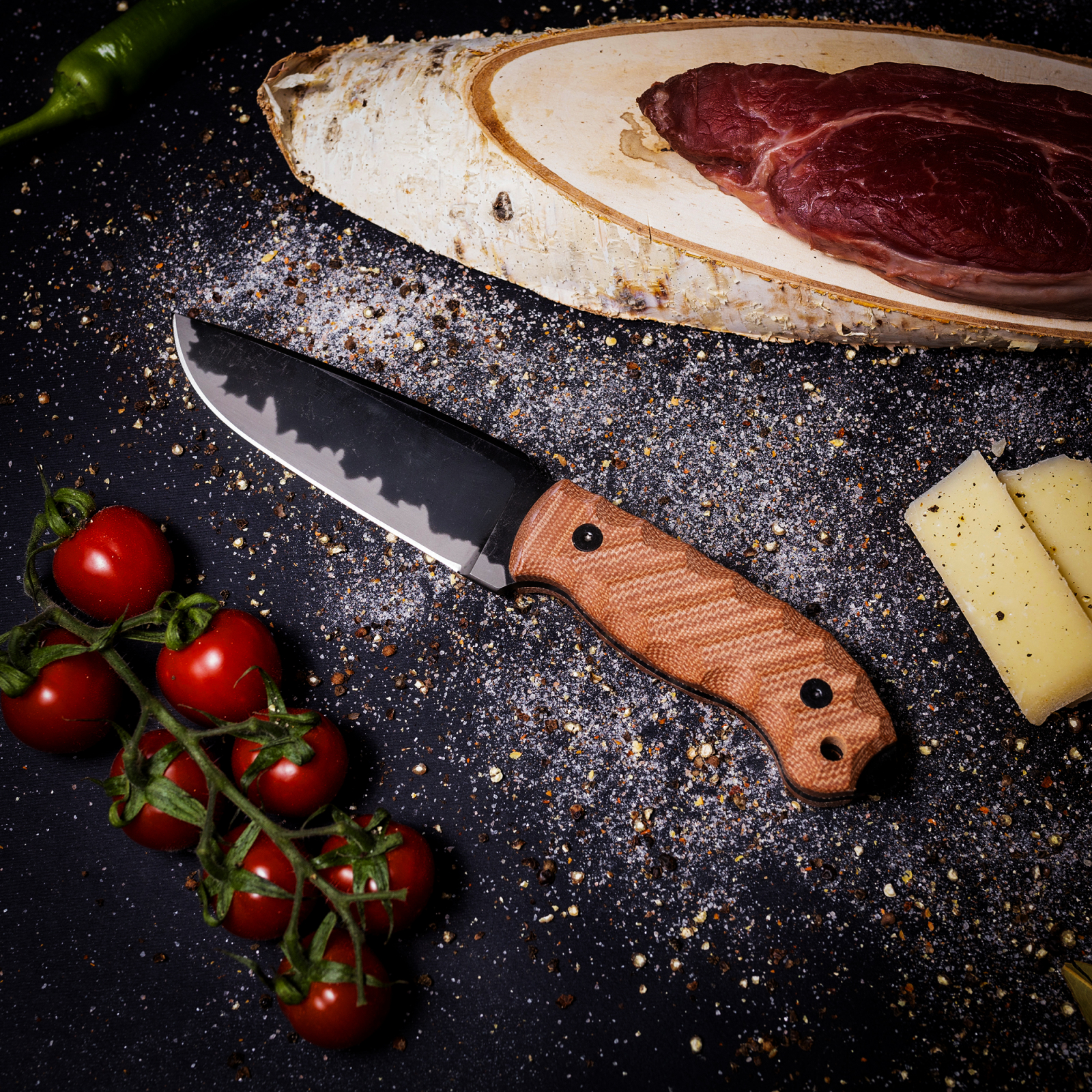 Американски нож Winkler, къмпинг и туризъм, въглеродна стомана A2, дръжка Micarta, кания от изкуствена кожа, 23 см