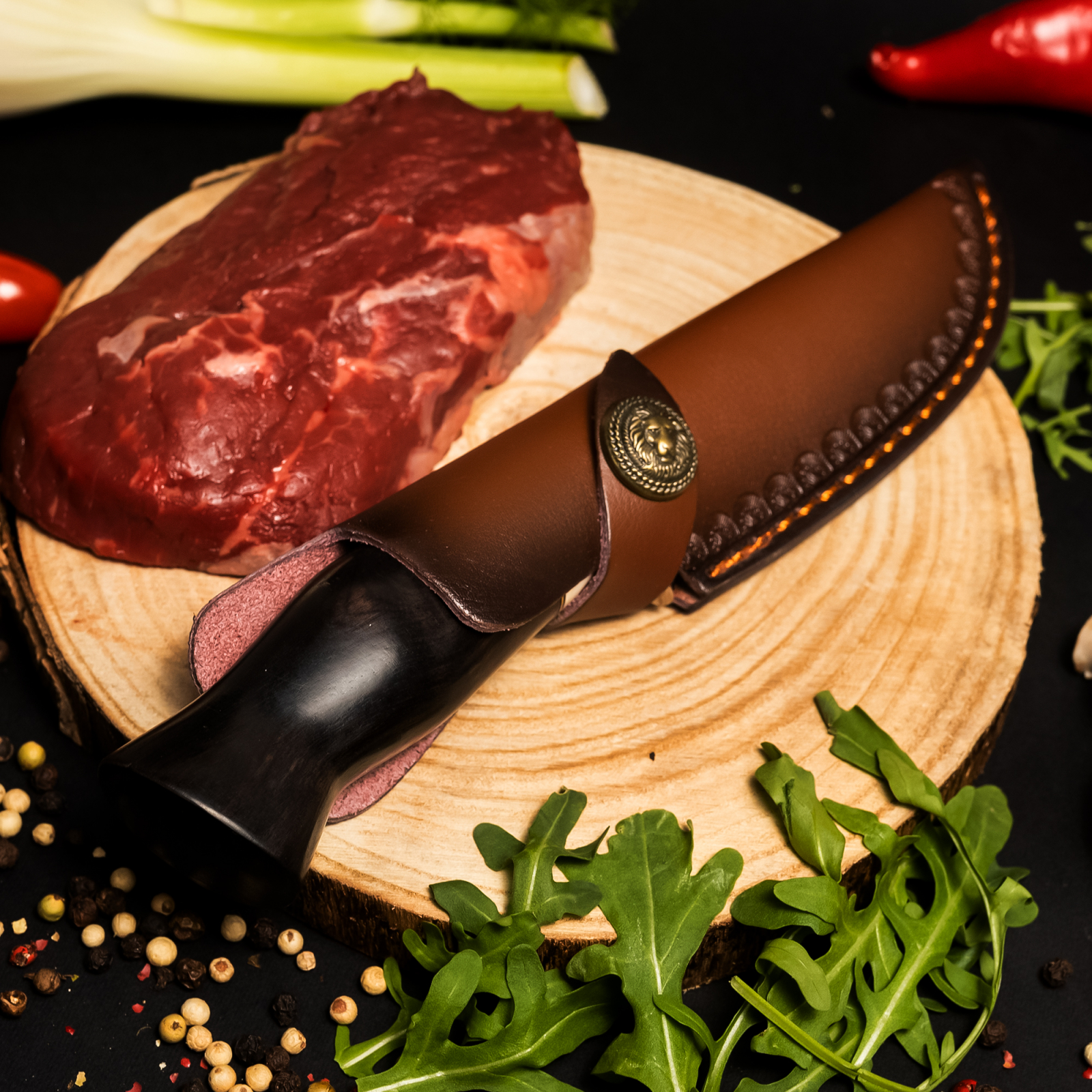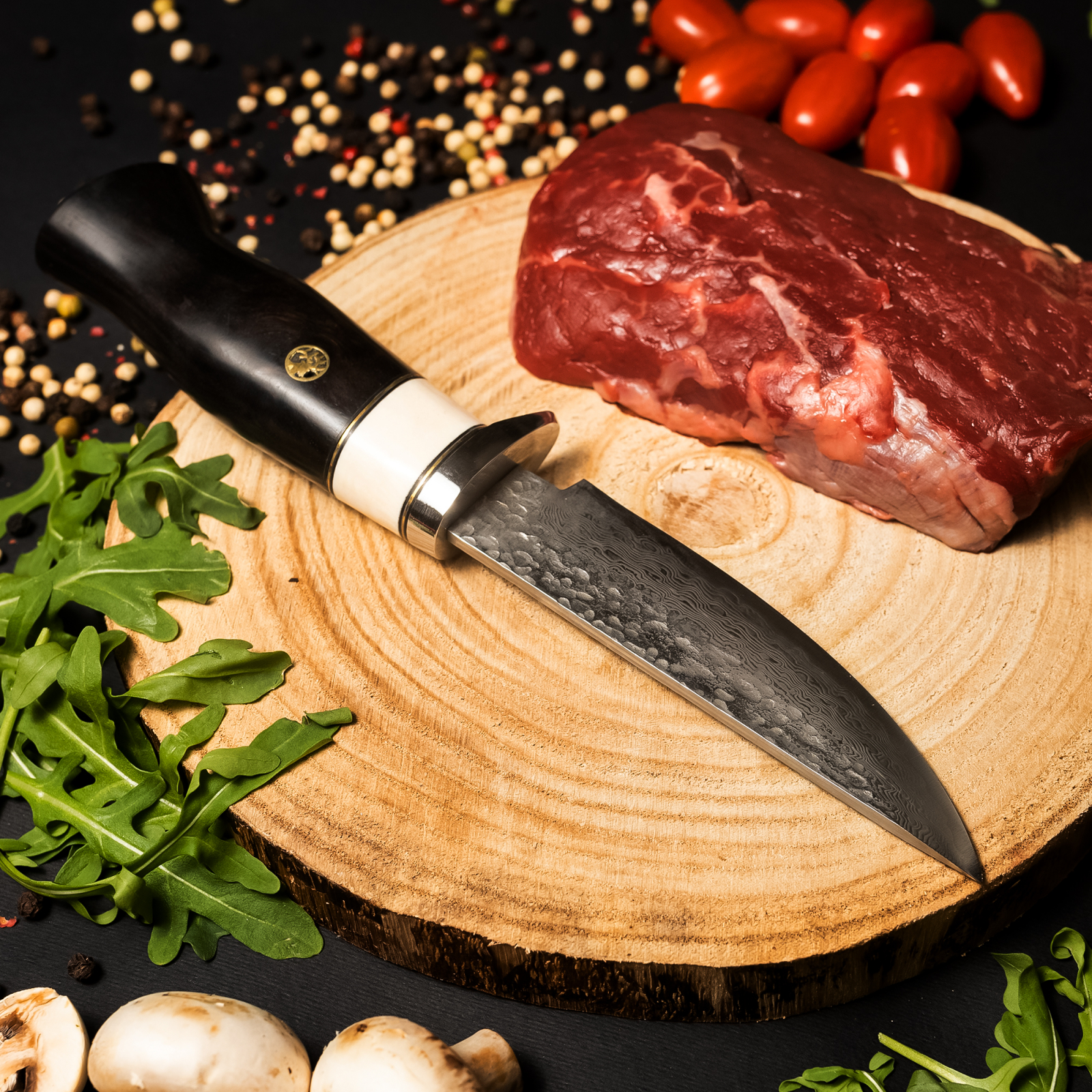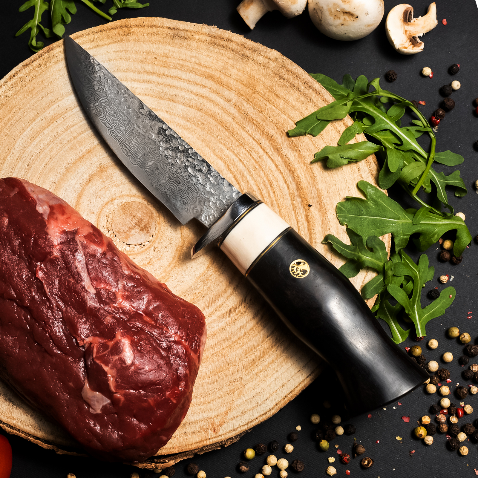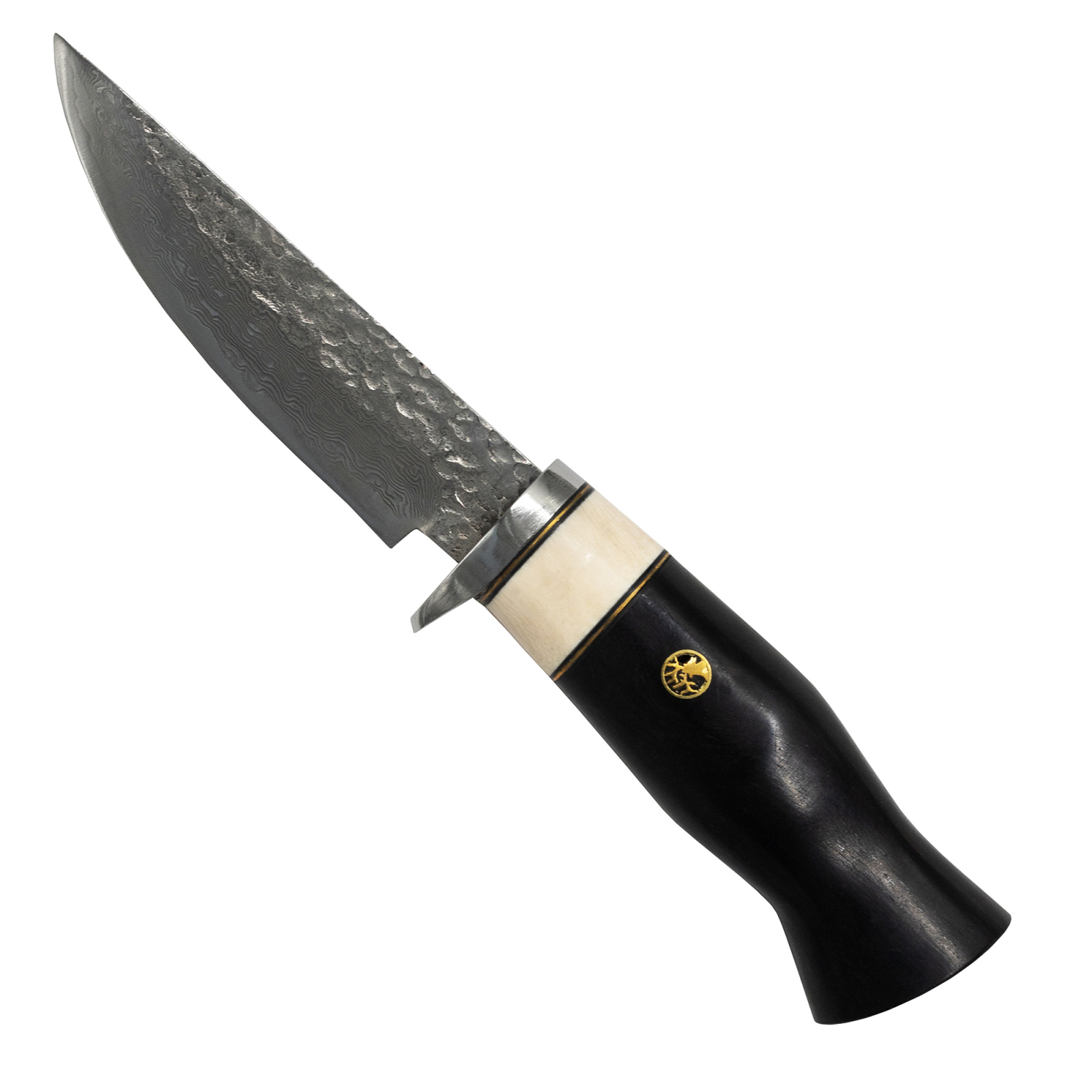 Horn II Нож , къмпинг и туризъм, сърцевина от дамаска стомана VG10, дръжка от дърво и кост, 22,5 cm