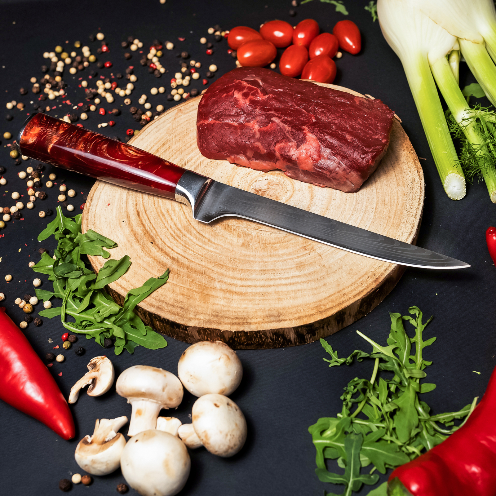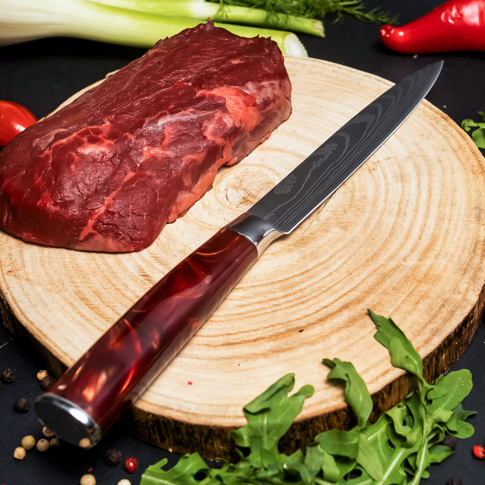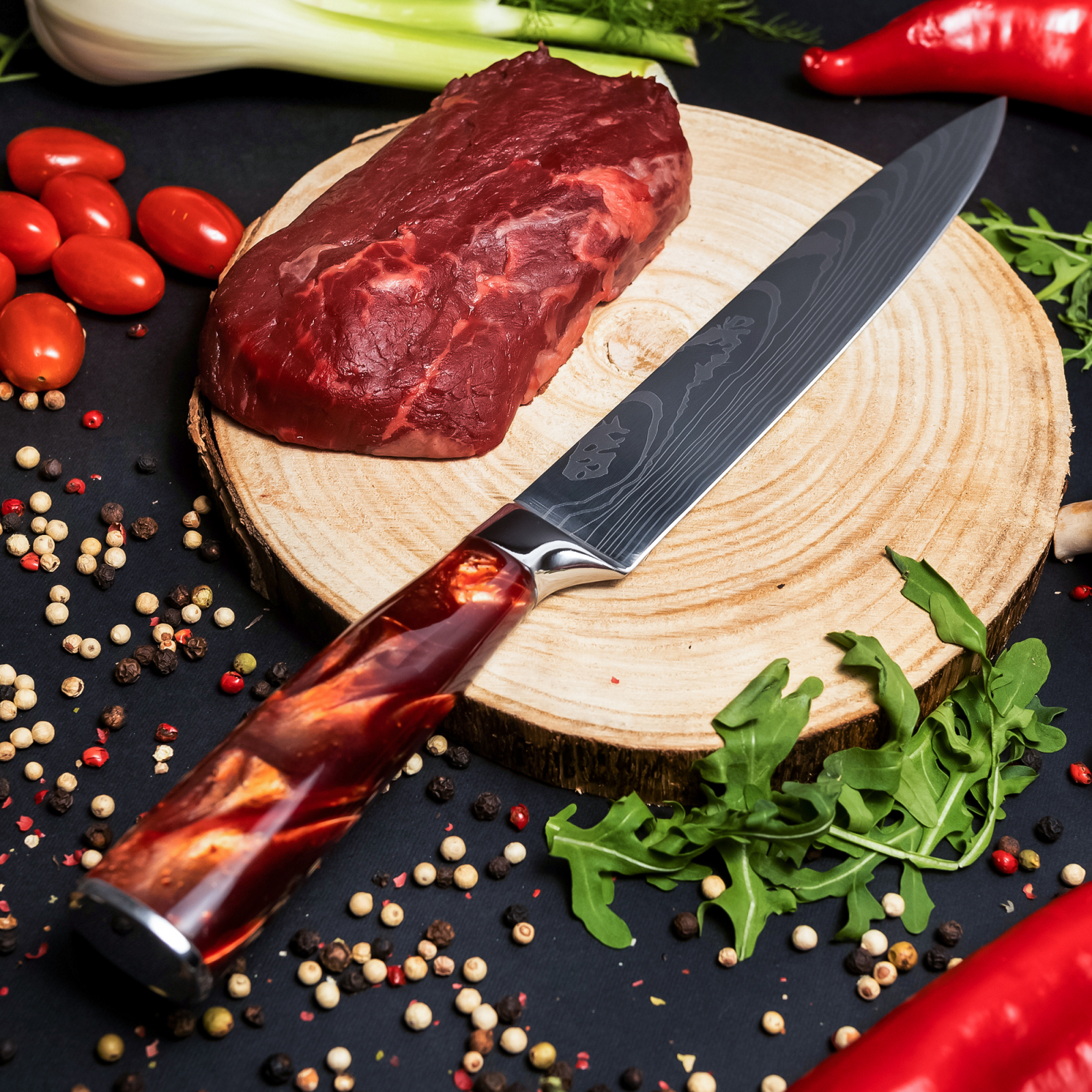 Комплект от 10 професионални кухненски ножа Red Forest, неръждаема стомана 4Cr13Mov, дръжка от смола