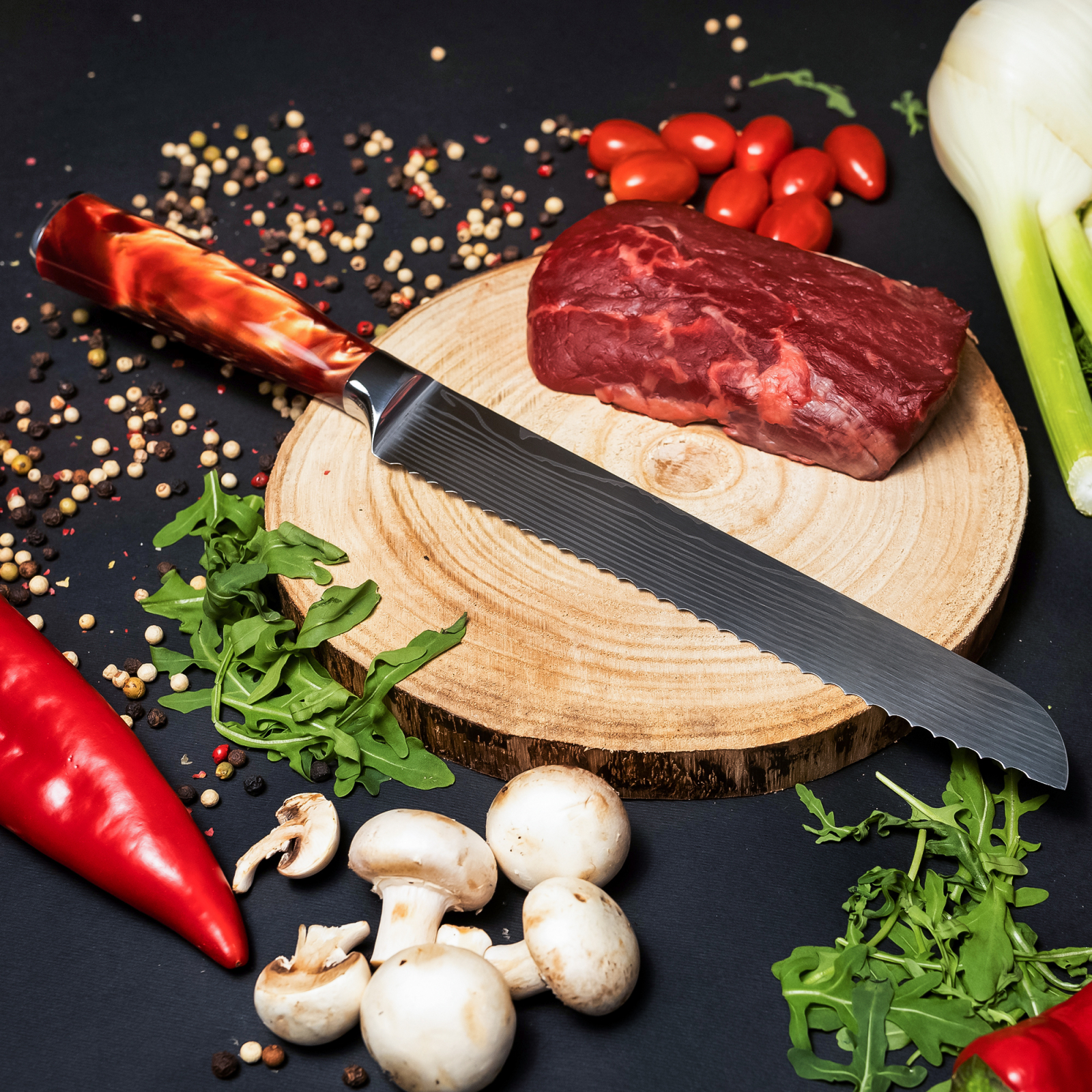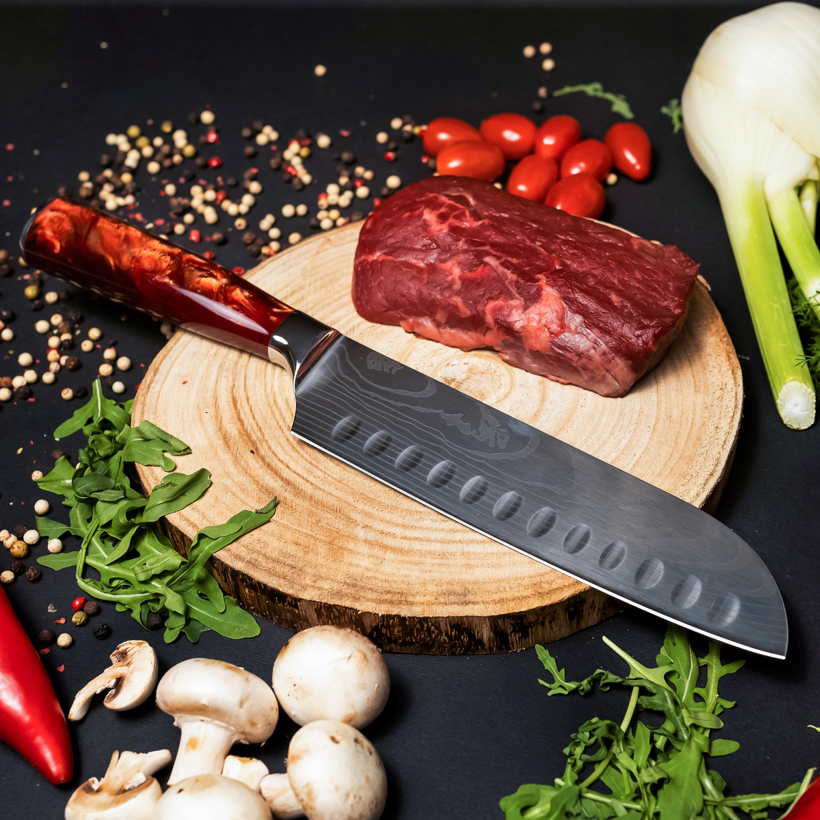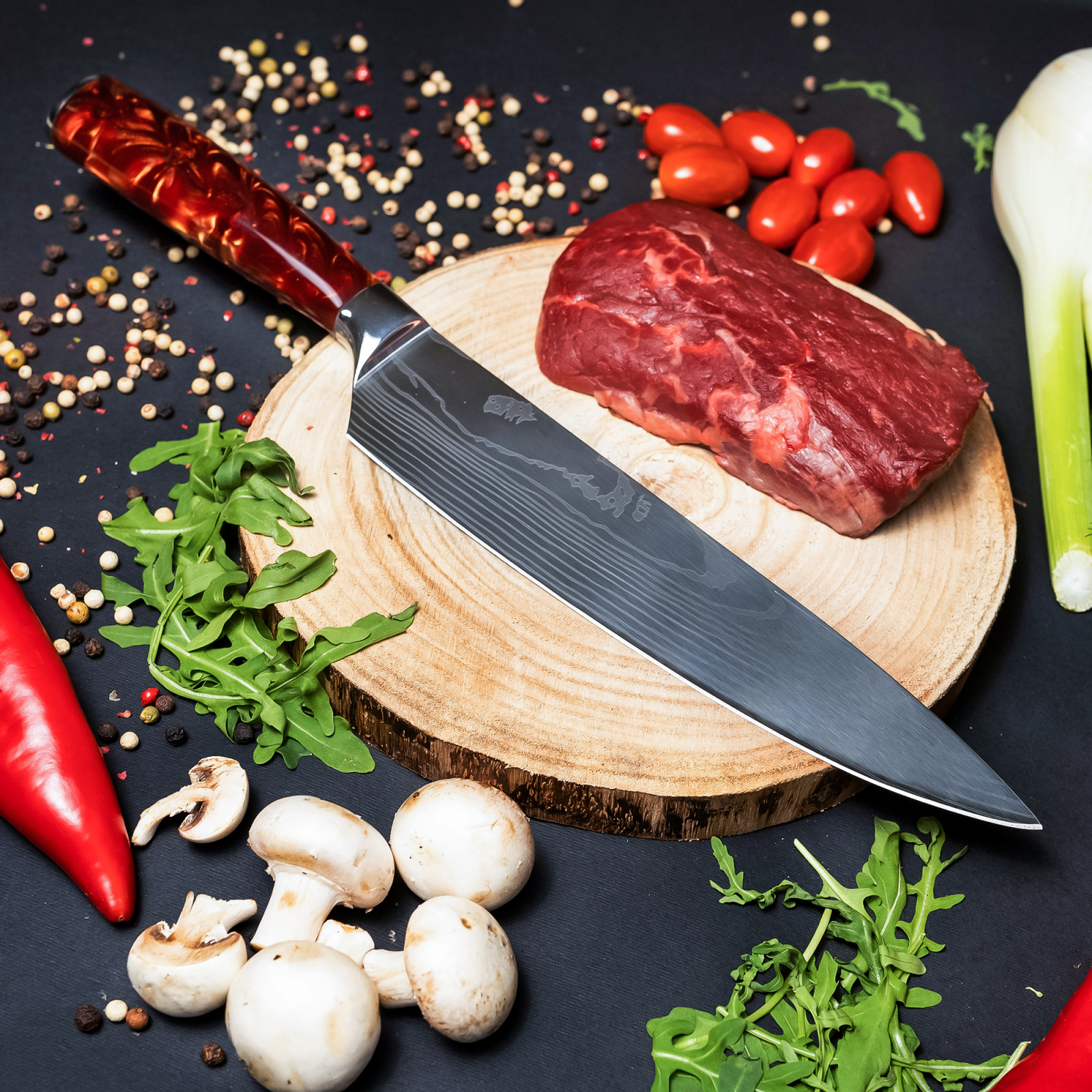Комплект от 10 професионални кухненски ножа Red Forest, неръждаема стомана 4Cr13Mov, дръжка от смола