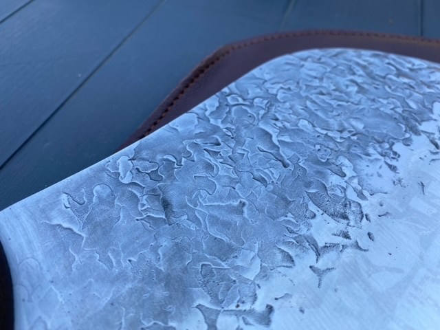 -Например високо въглеродната стомана е склонна да ръждясва бързо, но това е напълно нормално, металът запазва ръба си дълго време, но ръждясва по-лесно. Не е необходимо да се притеснявате, когато се появи ръжда, тя е напълно нормална за тези метали. На противоположния полюс, VG10 стомана, например, ръждясва много трудно, ето защо тя е добра в кухнята и за ежедневна употреба, за да се нуждаят от твърде много поддръжка, но тя трябва да се заточва по-често. Ако все пак се появи ръжда, добрата новина е, че тя е само повърхностна и може да бъде отстранена много лесно с разтвор против ръжда.